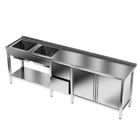 Nerezový stůl s dvoukomorovým dřezem 260x70x85 cm | FORGAST