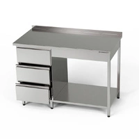 Nerezový pracovní stůl s blokem zásuvek a policí 130x70x85 cm | FORGAST