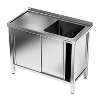 Nerezový stůl s dřezem a skříňkou 120 cm | FORGAST