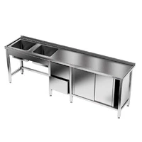 Nerezový stůl s dvoukomorovým dřezem 260x60x85 cm | FORGAST