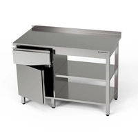 Nerezový pracovní stůl se skříňkou, zásuvkou a 2 policemi 120x70x85 cm | FORGAST