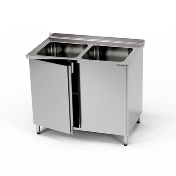 Nerezový stůl s dvoudřezem a skříňkou 100x70x85 cm | FORGAST