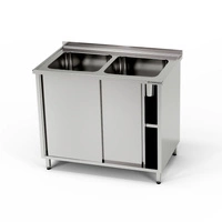 Nerezový stůl s dvoudřezem a skříňkou 100x60x85 cm | FORGAST