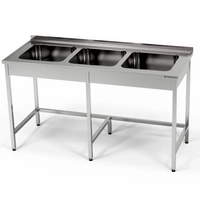 Nerezový stůl s tříkomorovým dřezem 190x60x85 cm | FORGAST