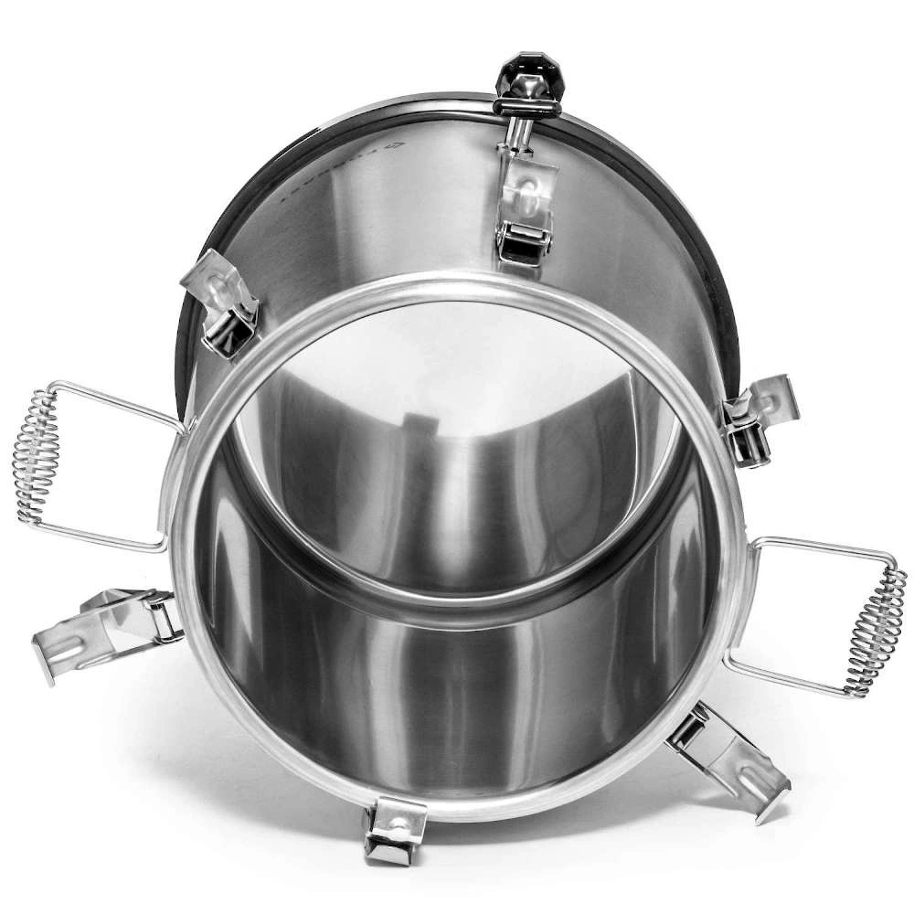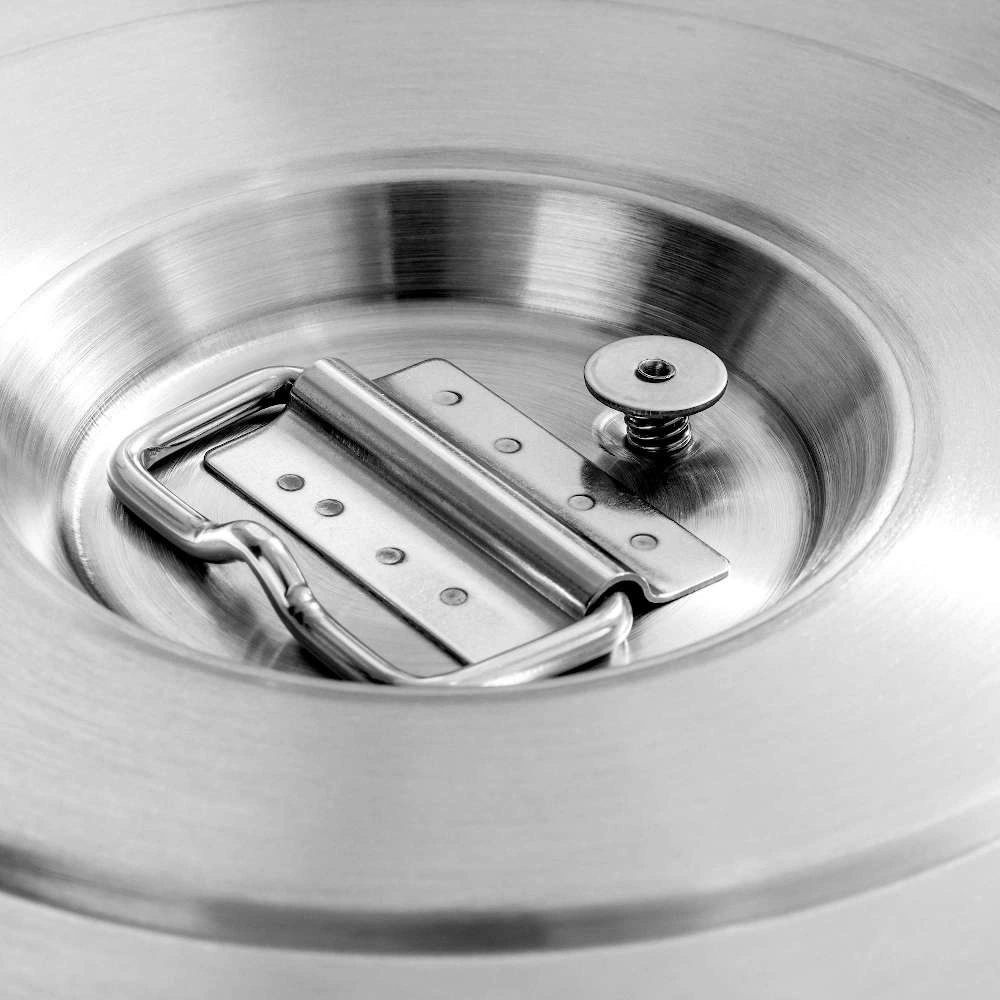 V sadě je termos s víkem uzavíratelným na 6 pevných západek, silikonové těsnění zajišťující těsnost a ergonomické transportní rukojeti. Další výhodou je odtlakovací ventil, který umožňuje bezpečné otevírání termose i při vysoké teplotě jeho obsahu. Gumová základna chrání termos před poškozením a posunem po povrchu, což je zvláště důležité při práci v dynamickém gastronomickém prostředí.