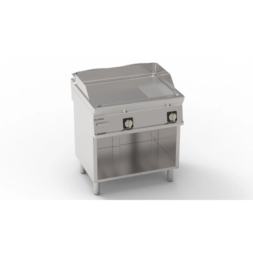Hladce žebrovaná chromovaná grilovací deska 400V na otevřeném podstavci od společnosti Tecnoinox řady Tecno74 představuje kombinaci modernosti a spolehlivosti, určenou pro střední a velké restaurace a hotely. Byla vytvořena s ohledem na nejvyšší standardy kvality a nabízí nejen výjimečný výkon, ale dbá i na detaily, které usnadňují každodenní práci v kuchyni.