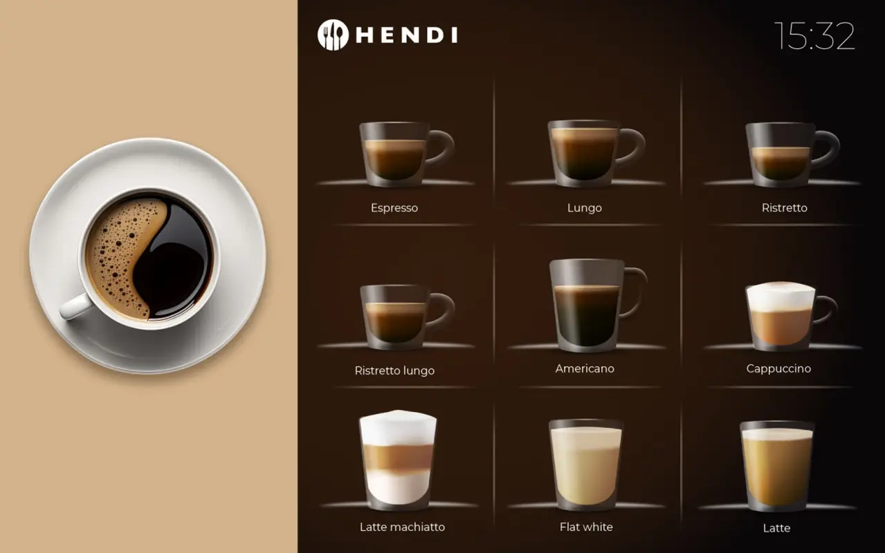 Pokročilý kávovar značky HENDI vybavený velkým dotykovým displejem je zařízení navržené pro profesionální použití v gastronomii, hotelnictví a kancelářských prostorech. Tento model se vyznačuje vysokou výkonností, moderním ovládacím panelem a možností přípravy široké škály kávových nápojů. Osvědčí se všude tam, kde je důležitá rychlá a intuitivní obsluha a nepřetržitý provoz během špičky.