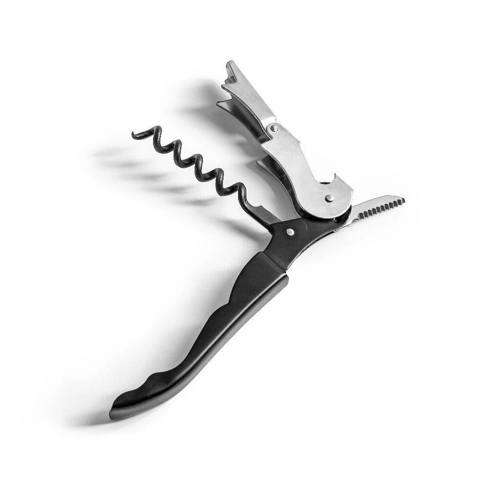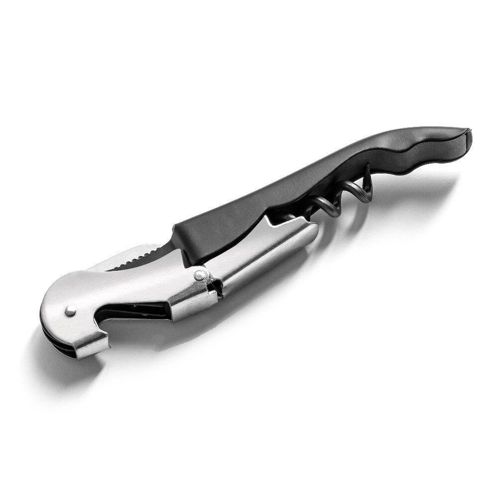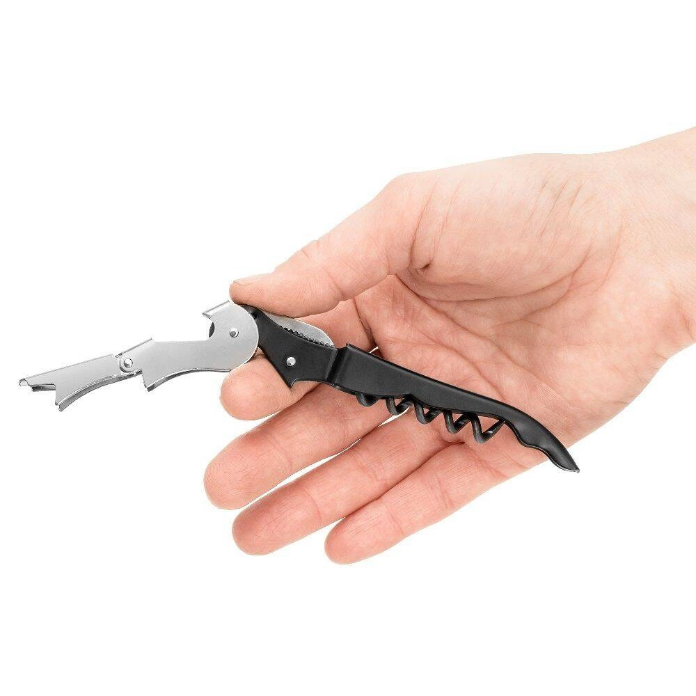- Tři funkce v jednom nástroji – vývrtka umožňuje rychlé otevírání lahví s vínem, má čepel na řezání fólie a klasický otvírák na korunkové uzávěry. Toto řešení je ideální při práci v baru, kde je důležitá multifunkčnost a pohodlí.