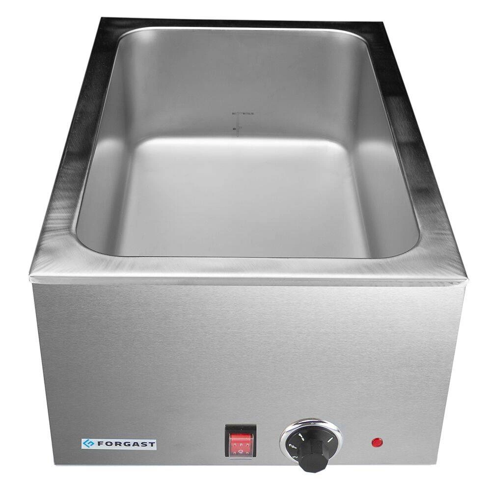 Bain-marie Forgast FG09800 je vybaven vanou přizpůsobenou pro gastronomické nádoby velikosti GN 1/1 s maximální hloubkou 15 cm. To umožňuje ohřívání a udržování správné teploty jak jednotlivých velkých jídel, tak většího množství polévek či omáček. Pevná nerezová ocel zajišťuje dlouhou životnost zařízení a jeho kompaktní rozměry umožňují umístění na pracovní desku, stůl nebo výdejní linku. Zařízení je doporučeno zejména pro snídaňové bufety, catering, rychlé občerstvení a menší restaurace, kde je důležitá rychlá obsluha a estetické podávání pokrmů.