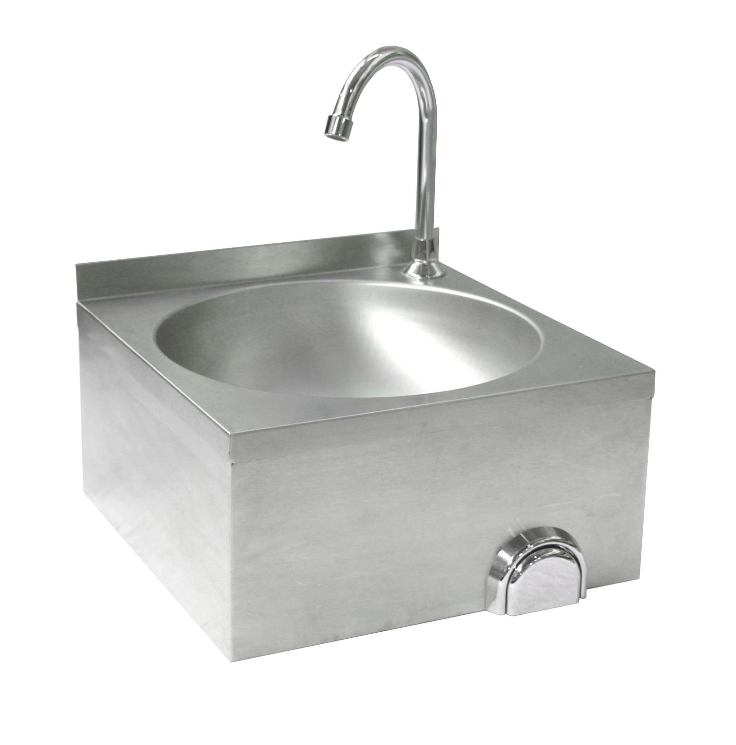 Bezdotykový kuchyňský dřez. Vyroben výhradně z nerezové oceli. Umyvadlo o průměru 35 cm a hloubce 12,3 cm. Snadné a hygienické ovládání kolenem. Připojovací prvky jsou součástí dodávky.