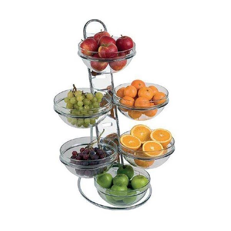 Bufetový stojan BIG APS 11599 je moderním řešením pro elegantní servírování jídel během cateringových akcí, hotelových snídaní nebo firemních večírků. Vyniká pevnou kovovou konstrukcí a praktickým uspořádáním misek, které umožňuje estetickou a pohodlnou prezentaci různých pokrmů nebo občerstvení.