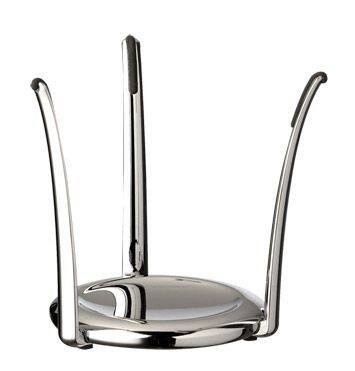 Produkt je vyroben z vysoce kvalitních chromovaných materiálů, což zaručuje jeho odolnost a dlouhou životnost. Protiskluzové prvky na ramenech a základně zajišťují stabilitu a ochranu povrchu, na kterém stojí. Základna stojanu může sloužit i jako praktická podložka na servírovací příbory, což je zvláště užitečné při podávání teplých jídel a svačin.