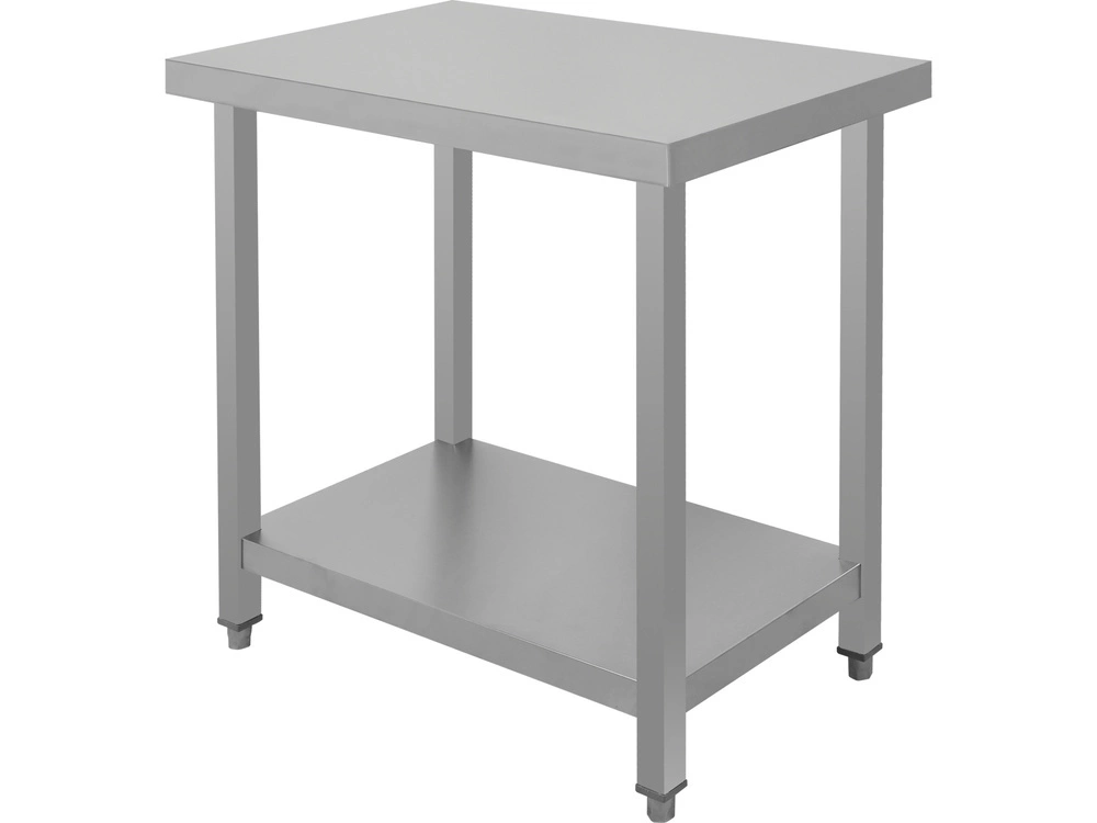 Šroubovaný centrální pracovní stůl YATO YG-08990 s policí o rozměrech 80x50x85 cm je praktickým a odolným řešením pro profesionální gastronomické kuchyně. Je vyroben z leštěné nerezové oceli SS201 a je odolný vůči organickým kyselinám a čisticím prostředkům, takže se snadno udržuje v každodenní čistotě. Robustní konstrukce z 0,8 mm silného plechu, zesílená 20 mm silnou laminovanou dřevěnou deskou zespodu, zaručuje nosnost desky až 150 kg a účinné tlumení zvuku.