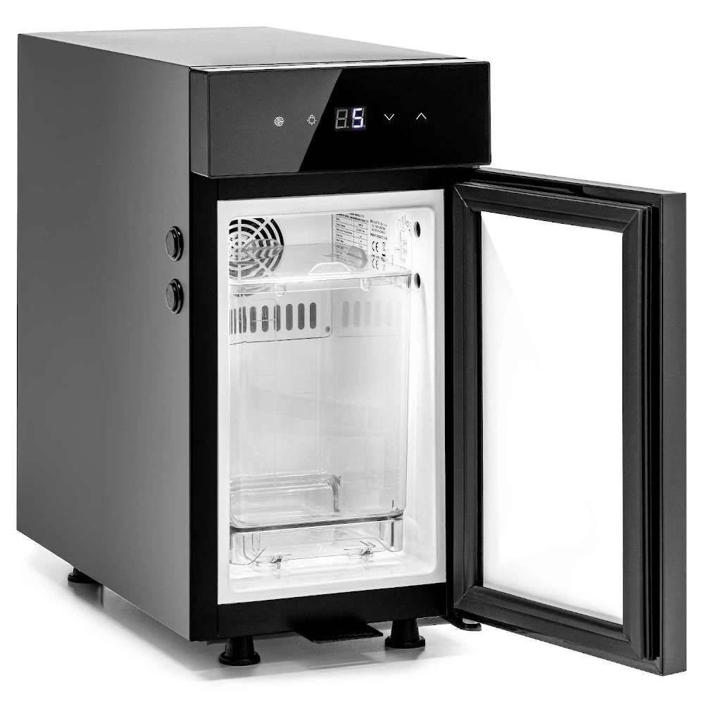 Chladnička na mléko FORGAST FG05714 je specializovaná lednice navržená pro profesionální kávovary. Je vybavena elektronickým displejem teploty, který umožňuje přesné chlazení mléka na optimální teplotu. Díky kompaktním rozměrům a elegantnímu černému provedení je ideální volbou jak do kaváren, restaurací, tak i do kanceláří, kde záleží na pohodlí a kvalitě podávaných mléčných nápojů.