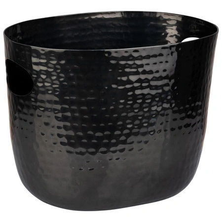 Chladič na láhve s úchyty v černé barvě je praktickým a stylovým doplňkem každého stolu, který se skvěle hodí jak pro domácí setkání, tak do restaurací nebo na akce. Vyznačuje se efektním, tepaným povrchem imitujícím bronz a pevnými bočními úchyty usnadňujícími přenášení. Ideální pro chlazení vína, šampaňského a dalších nápojů, udržuje jejich správnou teplotu po dlouhou dobu.