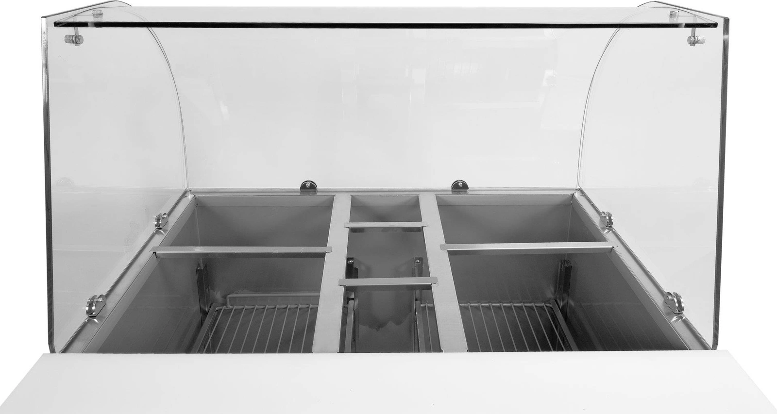 Stůl má pomocnou desku z polyethylenu a navíc velký otvor pro 4x GN1/2 a 3x GN 1/6 nádoby, max. 15 cm hluboké, do kterých lze uložit různé druhy příloh a přísad do salátů. Nádoby nejsou součástí dodávky. Účinné chlazení zajišťuje spodní chladicí jednotka o výkonu 170 W využívající chladivo R600a. Zařízení je zařazeno do klimatické třídy 4 s maximální okolní teplotou 30 °Co C a 55% relativní vlhkosti, zatímco elektronický regulátor Dixell s digitálním ukazatelem teploty zaručuje přesnou regulaci. Má funkci automatického odmrazování.