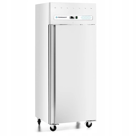 Chladicí skříň Forgast je profesionální chladicí zařízení s kapacitou 685 litrů, vybavené jedněmi dveřmi a přizpůsobené pro práci s GN 2/1 nádobami. Tento model se vyznačuje odolným, bíle lakovaným pláštěm a vnitřkem z nerezové oceli, což zajišťuje dlouhodobý provoz v gastronomii. Skvěle se hodí do restaurací, hotelů, cateringů a stravovacích zařízení, kde je prioritou spolehlivé chlazení a hygiena.