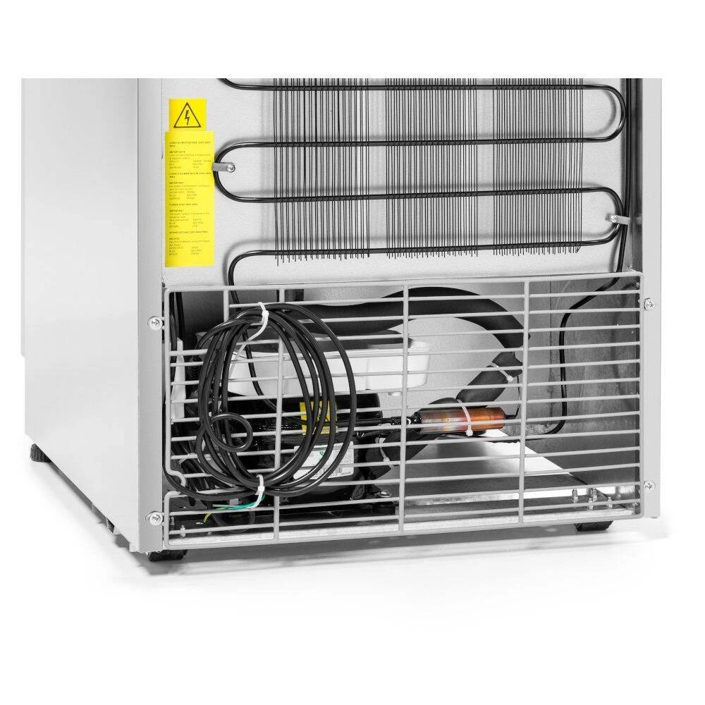 • Vnější rozměry: 59,5 × 68,7 × 182,7 cm – kompaktní rozměry usnadňují umístění skříně i v menších kuchyních nebo zázemí obchodů.
