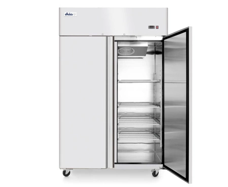 Chladicí skříň Dvoudveřová řada Profi Line s objemem 1260 litrů vyrobená výhradně z nerezové oceli (zadní vnější stěna z pozinkovaného plechu). Polyuretanová tepelná izolace - tloušťka stěny 6 cm. Nucené chlazení. Digitální ukazatel teploty. Elektronický termostat. Samozavírací dveře s pohodlným tvarovaným madlem po celé výšce. Vybaveno 6 standardními pócky GN 2/1. 4 pócky včetně 2 s brzdou.