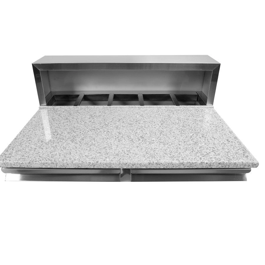 - Pevná nerezová ocel a mramorová deska – Plášť z nerezové oceli zajišťuje odolnost a snadnou údržbu, zatímco mramorová pracovní deska je ideální pro zpracování těsta na pizzu a zaručuje hygienické pracovní podmínky.
