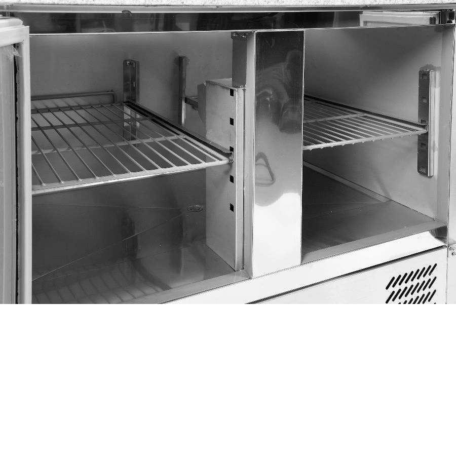 Dvoudveřový chladicí stůl s nástavcem je ideální pro pizzerie, restaurace, fast foody a všude tam, kde je důležitý rychlý přístup k čerstvým surovinám. Dynamický chladicí systém zaručuje, že teplota uvnitř zařízení zůstává stabilní a bezpečná bez ohledu na intenzitu provozu kuchyně. Automatické odmrazování omezuje potřebu ručních zásahů, což šetří čas a zajišťuje plynulý chod provozu. Elektronický regulátor teploty umožňuje přesné nastavení chladicích parametrů, což je velmi důležité při skladování citlivých potravin.