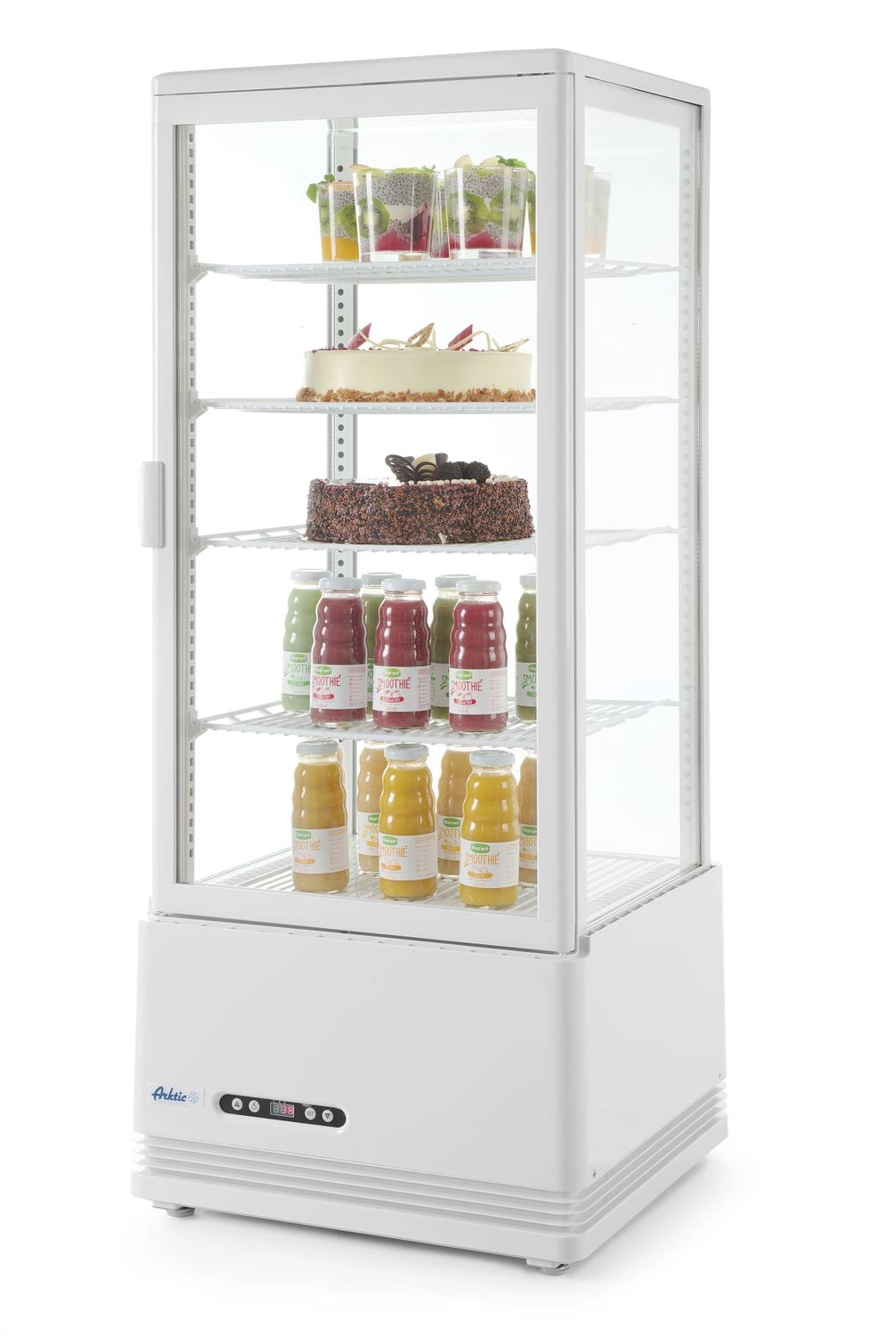 Chladicí vitrína HENDI byla navržena s důrazem na maximální pohodlí obsluhy a efektivní prezentaci produktů. Skříň z nerezové oceli lakované na bílo zaručuje trvanlivost a hygienu. Dvojitě prosklené otočné dveře jsou snadné na obsluhu a vzduchový kanál eliminuje problém kondenzace páry na skle. Vnitřní prostor je vybaven čtyřmi nastavitelnými policemi, které lze libovolně umístit dle potřeby. Vestavěný digitální displej a elektronický termostat umožňují přesné nastavení parametrů chlazení.