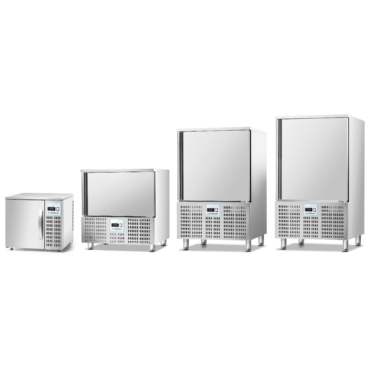 Zařízení je přizpůsobeno pro práci s pěti nádobami GN 1/1, což umožňuje současné chlazení nebo zmrazování velkého množství potravin. Díky tomu lze připravit větší porce jídel, což je zvláště důležité při obsluze banketů, cateringu nebo při intenzivní práci v hotelové kuchyni. Toto řešení je vhodné i pro potravinářské provozy, kde záleží na efektivitě a bezpečnosti produktů.