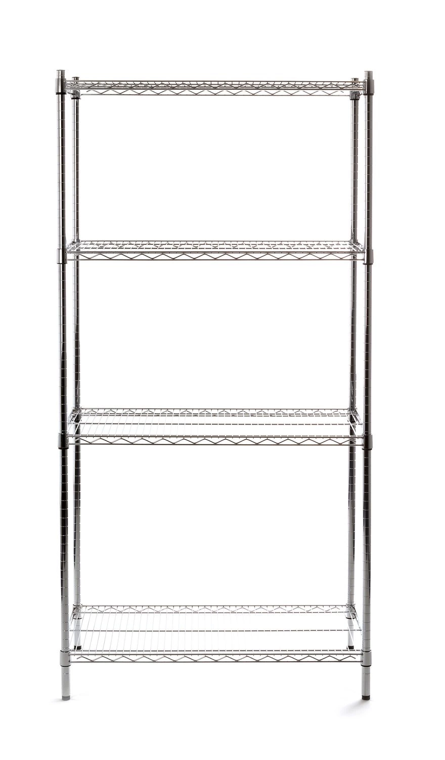 Pochromovaný čtyřpozicový úložný regál Značka Hendi. Vybaveno 4 nastavitelnými stoupačkami s maximální nosností 125 kg. Stojan je dodáván v plochém balení pro vlastní montáž.