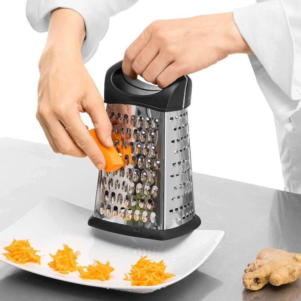 Čtyřstranné struhadlo FORGAST FG11138 je vyrobeno z vysoce kvalitní nerezové oceli, což zajišťuje jeho odolnost a odolnost proti mechanickému poškození. Plastová rukojeť nejen zvyšuje komfort používání, ale také minimalizuje riziko sklouznutí při strouhání. Tento nástroj je ideální jak do domácí kuchyně, tak do restaurací nebo cateringových firem – všude tam, kde záleží na rychlosti a přesnosti přípravy surovin.