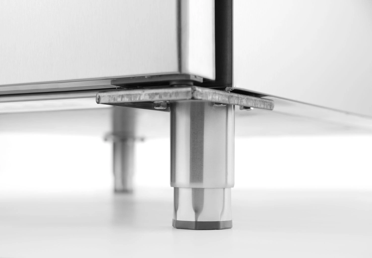 Robustní konstrukce z nerezové oceli AISI 304 zajišťuje odolnost při intenzivním provozu i snadnou údržbu. Dveře disponují systémem automatického dovírání, což minimalizuje ztráty energie a chrání produkty před nechtěným zvýšením teploty. Digitální ovládací panel umožňuje intuitivní nastavení provozních parametrů a statický chladicí systém zaručuje rovnoměrné rozložení chladu. Nastavitelný počet úrovní vodítek umožňuje přizpůsobit prostor různým typům polic a plechů.