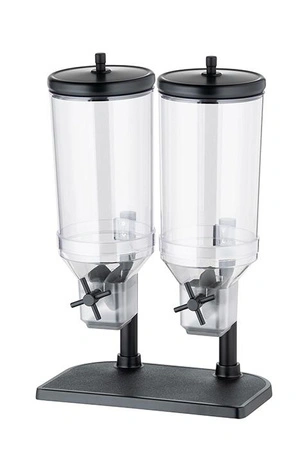 Dávkovač cereálií Duo FRESH & EASY je praktické a moderní řešení pro skladování a pohodlné dávkování cereálií, müsli nebo ořechů. Dvojitá nádoba umožňuje současné používání dvou různých produktů a těsné víko pomáhá udržet jejich čerstvost. Je to vynikající volba jak pro hotelové snídaňové bufety, tak pro domácí kuchyni, kde záleží na pohodlí a estetice.