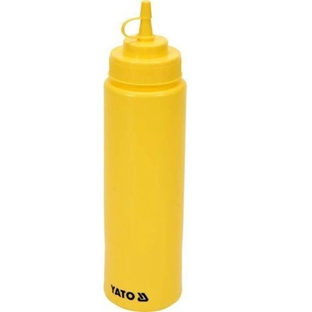 Dávkovač studené omáčky z polyethylenu ve žluté barvě. . Dávkovač má zátku, která zabraňuje vytečení omáčky a udržuje ji déle čerstvou.