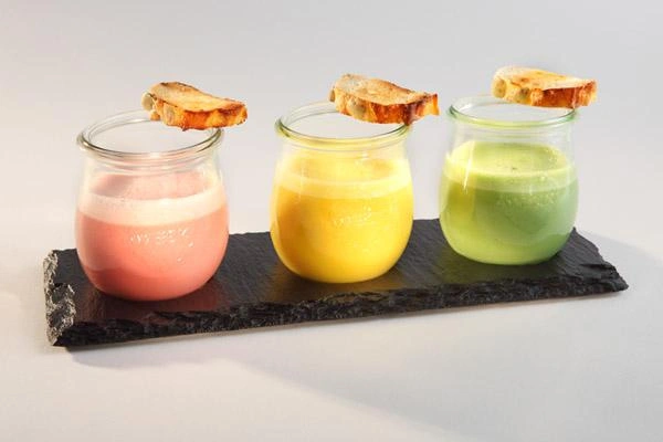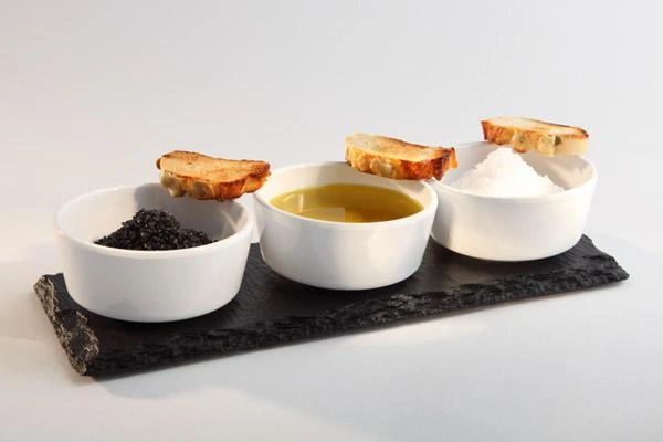 • Přírodní břidlice – materiál zaručuje odolnost, odolnost proti poškrábání a jedinečný vzhled, který zatraktivní každý pokrm.