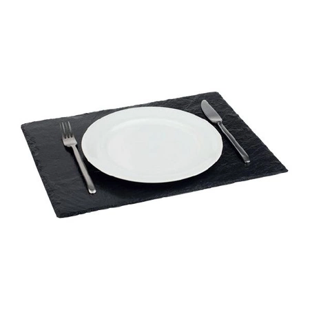 Břidlicová deska značky APS je určena k elegantní prezentaci vybraných pokrmů. Její minimalistický design se skvěle hodí k různým stylům stolního aranžmá a přírodní břidlice zvýrazňuje čerstvost a estetické kvality podávaných jídel. Vybavení protiskluzovými nožičkami zabraňuje posouvání desky, chrání pracovní plochy před poškrábáním a stabilizuje prezentaci i při intenzivním používání.