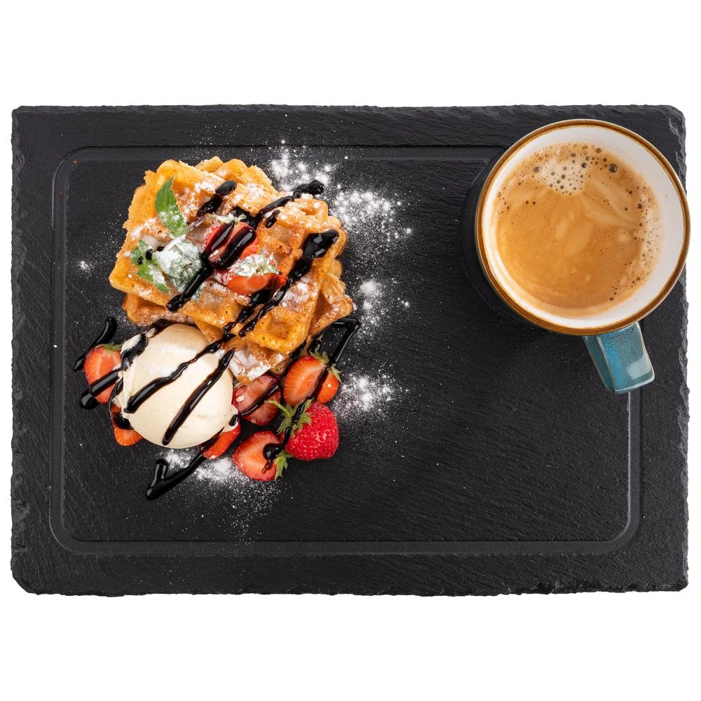 Břidlicová deska MORRA je ideální pro vystavení jídel během oslav, banketů nebo každodenního stolování. Lze na ní servírovat sýry, uzeniny, sushi, zákusky i teplá jídla díky odolnosti kamene vůči vysokým teplotám. Její minimalistický design zvýrazňuje estetické hodnoty podávaných pokrmů a upoutává pozornost hostů.