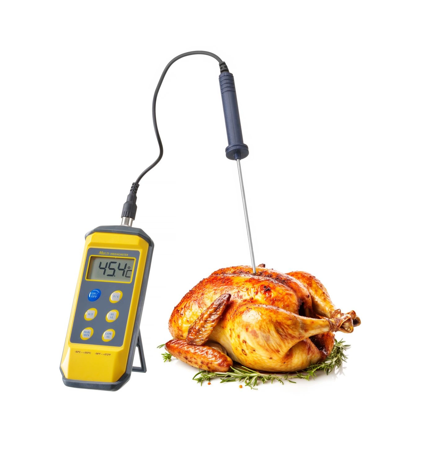 Digitální teploměr s vyměnitelnou sondou. . Vodotěsnost. Ochranné plastové pouzdro. Teplotní rozsah -50 až +300oC. Pouze pro měření teploty potravin.