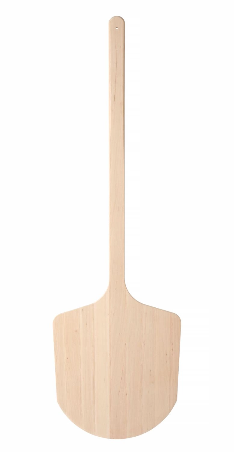 Lopatka na pizzu o délce 110 cm. Vyrobeno z lepeného bukového dřeva. Zaostřený konec lopaty pro snadné nanášení těsta. Rukojeť s otvorem pro zavěšení lopatky.
