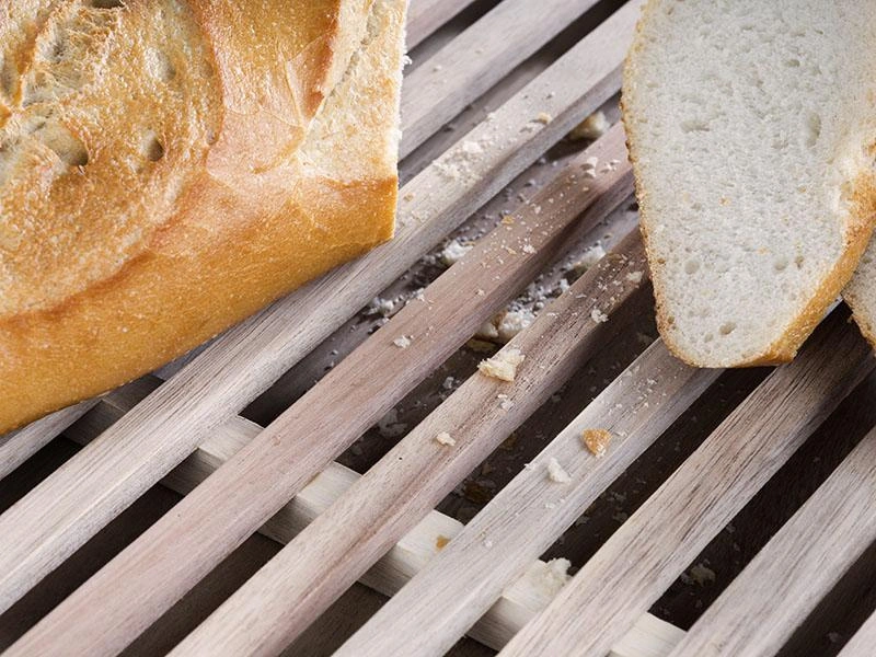 Krájecí prkénko LETTER je ideální pro každodenní použití jak v domácí kuchyni, tak v profesionálním gastronomickém provozu. Díky vyjímatelné misce na drobky je udržování pořádku při krájení pečiva mimořádně snadné. Protiskluzové nožičky zajišťují stabilitu i na hladkých površích a velká pracovní plocha umožňuje pohodlnou přípravu ingrediencí pro různé pokrmy. Dekorativní nápisy dodávají prkénku jedinečný charakter a činí z něj také atraktivní prvek kuchyňského vybavení.
