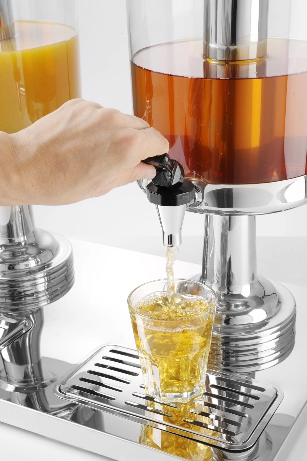 Dávkovač, dávkovač šťávyóy pod vodouóy s kapacitou 2x8 litrů. Má ocelovou vložku lód pro chlazení nápojeój. Snadno se čistí, má odnímatelnou odkapávací mřížku. Zásobník na šťávu je vyroben z polykarbonátu. Kohoutek bez odkapávání.