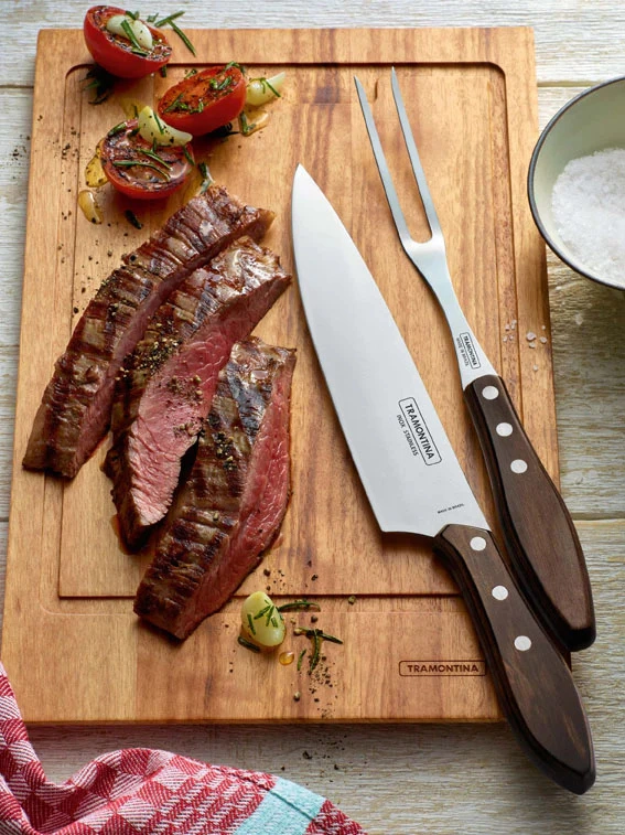 Tramontina nabízí dvoudílnou sadu na maso v podobě Nůž a vidlička na maso CHURRASCOa dodává každému jídlu autentický brazilský nádech.