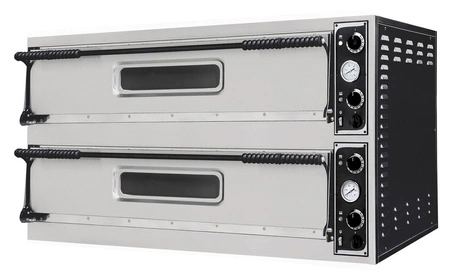 SLIM LINE 33 2-komorová pec na pizzu s ručním ovládáním. Každá komora pece pojme najednou 3 pizzy o maximálním průměru 35 cm. Přední část přístroje je vyrobena z nerezové oceli a zbytek krytu je vyroben z oceli. Izolace z minerální vlny. Dno komory vyložené šamotovými deskami o tloušťce 14 mm. Topná tělesa umístěná v horní a spodní části komory. Nastavení topných těles pomocí nezávislých termostatů. Teplotní rozsah spotřebiče je 50 až 455 °CC, časovač s rozsahem až 15 minut a samostatný teploměr pro každou komoru.