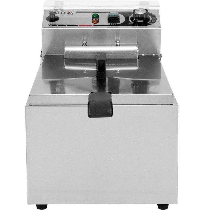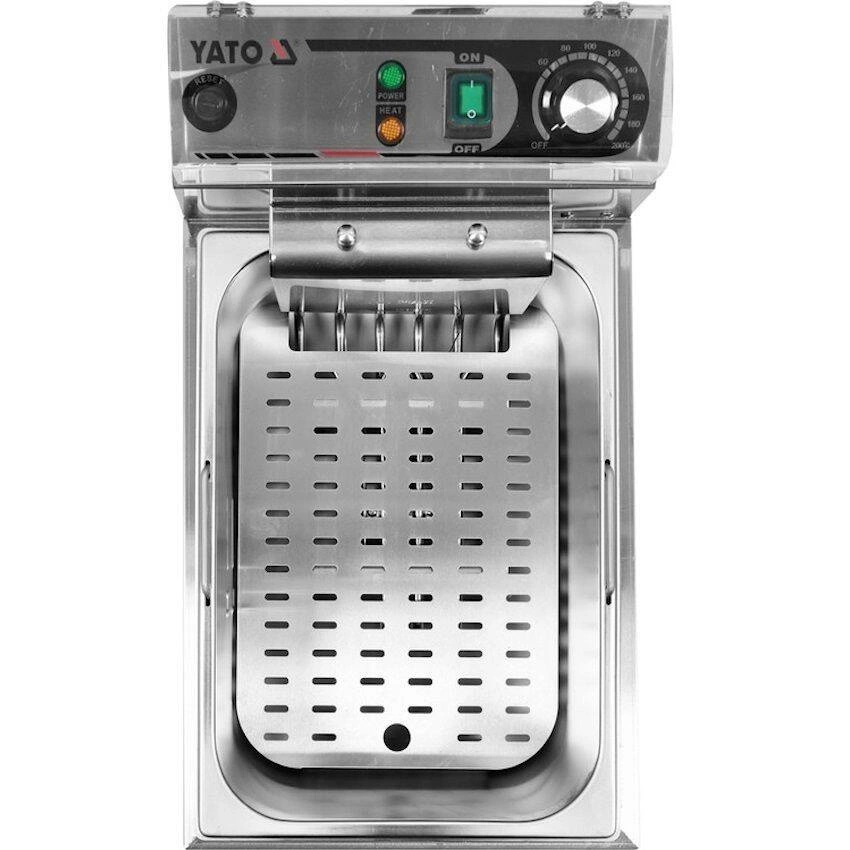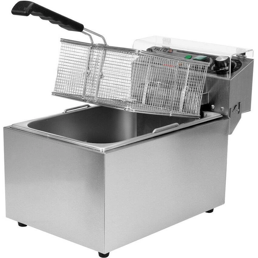 Fritéza s jednou komorou o objemu 11 l značky YATO. Je určena pro smažení v hlubokém tuku: hranolky, maso, ryby, krokety, zelenina. Nádrž fritézy má celkový plnicí objem 17 l. Minimální hladina oleje je 6,5 l a maximální 11 l.