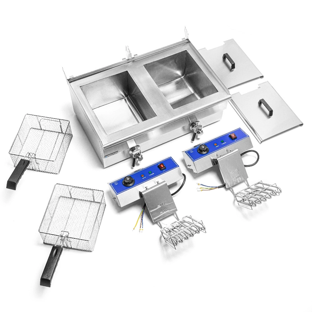 • Dvojitá komora s objemem 2x16 litrů – umožňuje současnou přípravu velkého množství různých smažených pokrmů, což činí zařízení ideálním pro obsluhu větších skupin hostů nebo provozů s vysokou návštěvností.