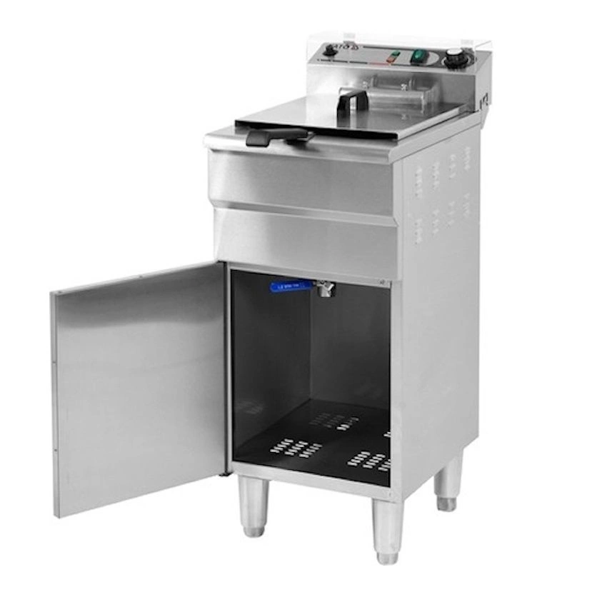 Fritéza s jednou komorou se skříňkou a kohoutkem o objemu 11,5 l značky YATO. Je určena k fritování ve velkém množství tuku: hranolky, maso, ryby, krokety, zelenina. Nádrž fritézy má celkový objem 16 l. Minimální hladina oleje je 9 l a maximální 11,5 l.
