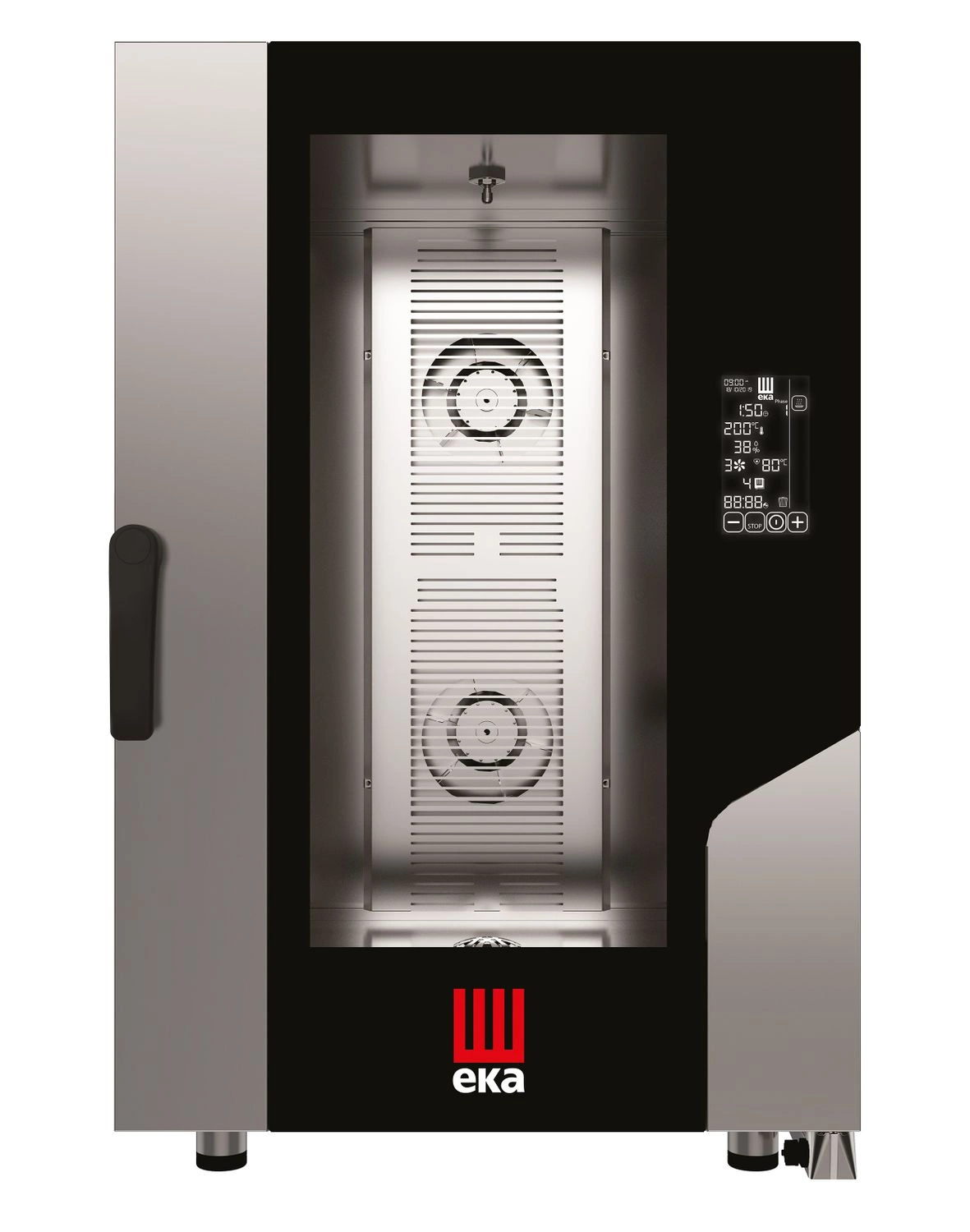 Dveře s dvojitým prosklením jsou opatřeny zámkem otevírání, který chrání obsluhu před nekontrolovaným pohybem. Těsnění dvířek je vyrobeno z odolného silikonu, který si snadno vyměníte sami. Žlábek pod dvířky. LED osvětlení komory. Izolovaný plášť trouby šetří elektrickou energii. Komora i plášť trouby z nerezové oceli.  Vyrovnání trouby je možné díky nastavitelným nožičkám. Je nutné připojení k elektřině, upravené vodě a kanalizaci.