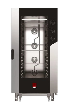 100 °C až 275 °C, 5stupňová regulace zamlžování komory. Dveře s dvojitým prosklením mají otevírací zámek, kterýóje navržen tak, aby chránil obsluhu před nekontrolovaným pohybem. Těsnění dvířek z odolného silikonu, které si snadno vyměníte sami. Žlábek pod dvířky. LED osvětlení komory. Izolovaný plášť trouby šetří elektrickou energii. Komora i plášť trouby z nerezové oceli. Vyrovnání trouby je možné díky nastavitelným nožičkám. Je nutné připojení k elektřině, upravené vodě a kanalizaci.