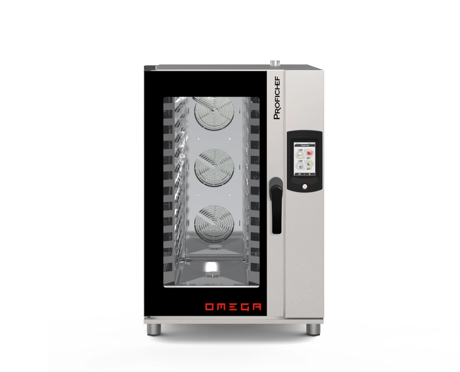 Elektrická konvektomata Omega 12 GN 1/1 PROFICHEF PCO211012 je moderní gastronomické zařízení určené pro profesionální kuchyně, jako jsou restaurace, hotely nebo jídelny. Vyniká velmi velkou kapacitou – umožňuje současnou přípravu pokrmů ve 12 GN 1/1 nádobách, a také přesnou kontrolu teploty a vlhkosti. Intuitivní dotykový ovládací panel a široké možnosti programování výrazně usnadňují práci v kuchyních s vysokou produkcí.