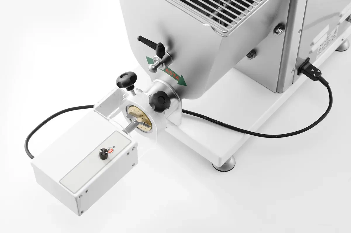 Elektrický nůž Hendi na krájení těstovin je spolehlivý nástroj určený k přesnému odřezávání kousků extrudovaných těstovin. Umožňuje rychlé a rovnoměrné porcování těsta, což zefektivňuje výrobní proces.