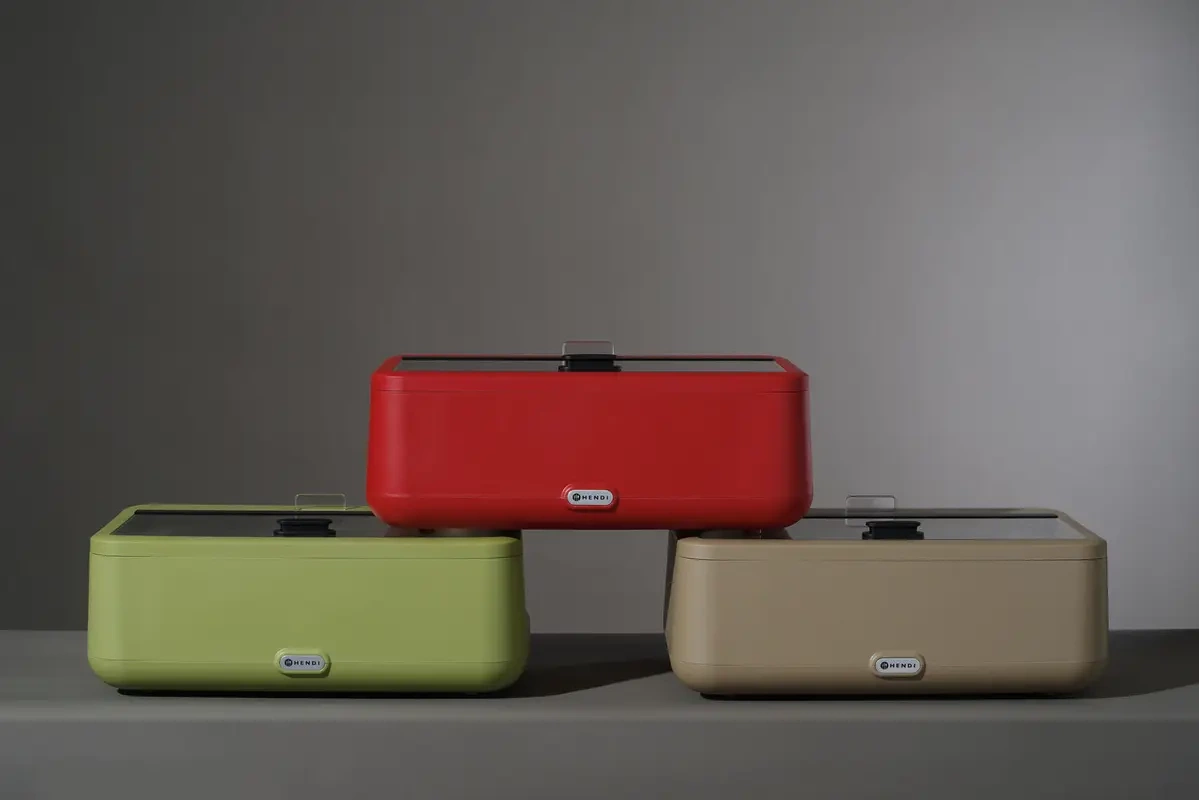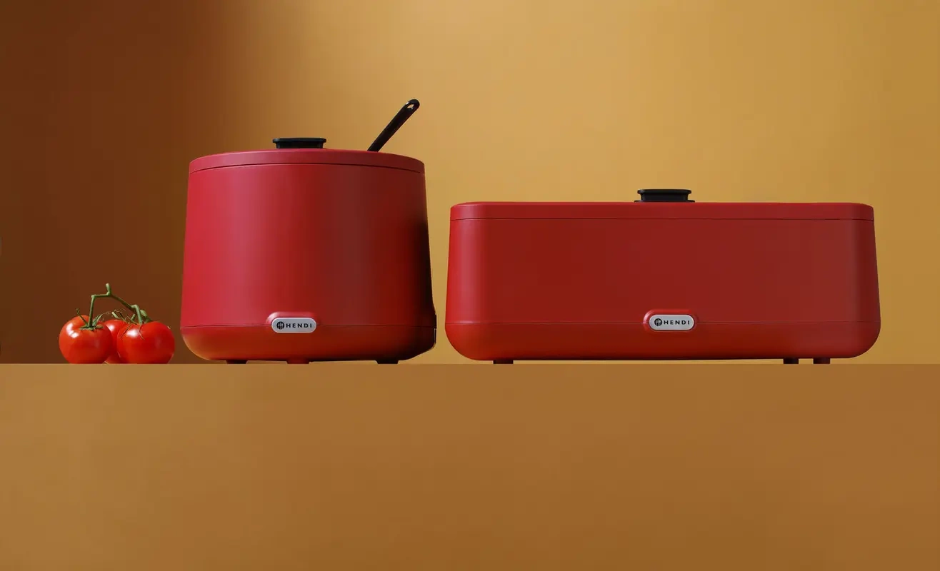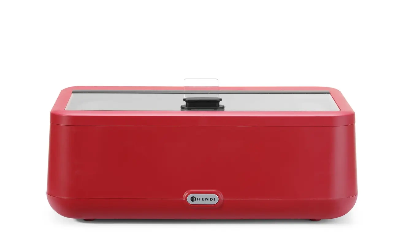 Elektrický ohřívač UNIQ, červený HENDI 470459 je zařízení vytvořené s ohledem na profesionály, kteří očekávají spolehlivost a estetiku. Použití nerezové oceli AISI 304 v konstrukci vložky a topného tělesa zaručuje bezpečné používání a snadné čištění. Kryt z teplovzdorného polypropylenu dokonale chrání vnitřek zařízení a dodává mu moderní vzhled. Díky vyjímatelné GN 1/1 nádobě o výšce 10 cm a víku z tvrzeného skla je zařízení vhodné jak pro každodenní servírování jídel, tak pro větší cateringové akce.