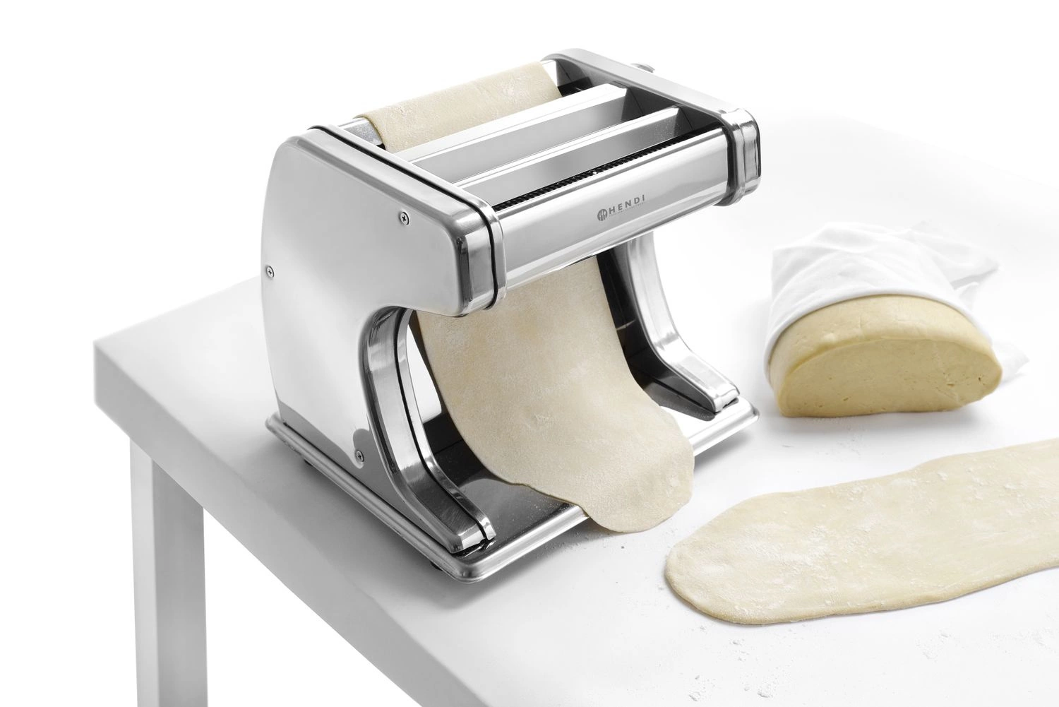 Elektrický strojek na těstoviny. Ideální pro přípravu čerstvých těstovin (maximální šířka těsta 17 cm). Bezpečnostní spínač ve víku. Knoflík pro nastavení tloušťky těsta v 7 krocích od 0,2 do 2,5 mm. Tři válečky/čepele: pro válení těsta, těstovin tagliatelle (6,25 mm) a fettuccine (2 mm).